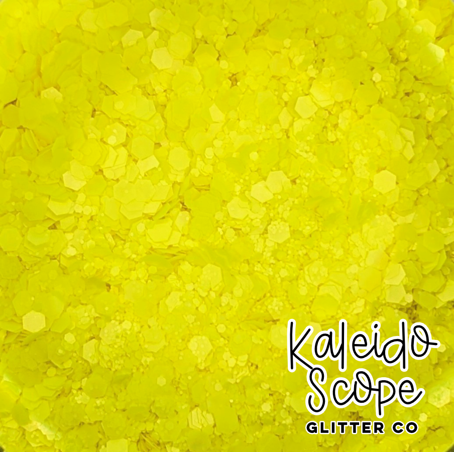 Lush Lemon is a neon yellow glitter with a flat appearance